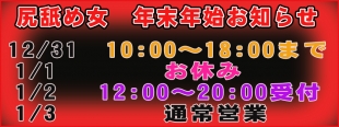 さぁ~今年最後の舐められ残しないように!舐め納めは当店で!!尻出してけーー!